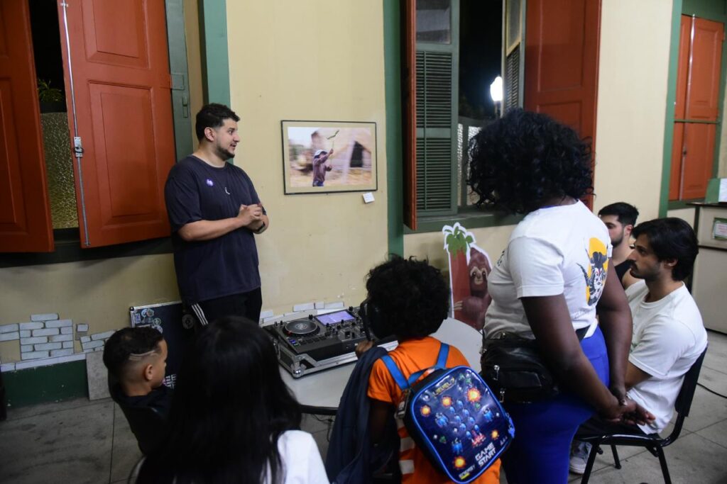 A atividade foi conduzida pelo DJ e produtor cultural Gustavo Peixoto e pelo instrutor Schneider Ferreira, que compartilharam técnicas de mixagem, explicaram o funcionamento de CDJs, mixers, XDJs e controladores, além de orientações sobre como iniciar uma carreira, montar repertórios e explorar a criatividade na criação de sets.